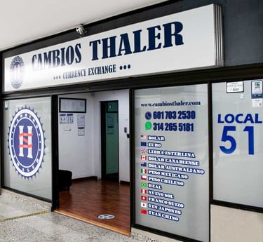 CAMBIOS THALER es una empresa que se dedica a la compra y venta de manera profesional de divisas en efectivo. Estamos regulados por el Banco de la Republica y Dirección de Impuestos y aduanas Nacionales con el fin de satisfacer las necesidades de nuestros clientes a través de una atención efectiva, ágil y oportuna y con las mejores tasas del mercado.